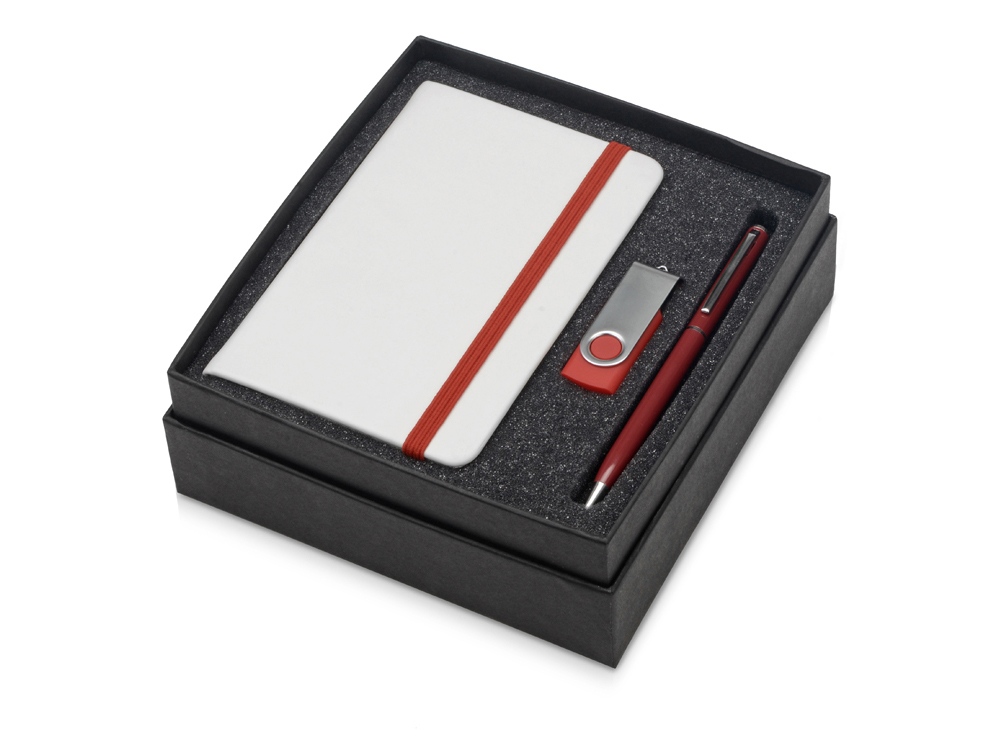 Подарочный набор Reporter Plus с флешкой, ручкой и блокнотом А6, красный