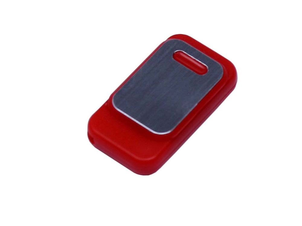 Пластиковая флешка с металлической пластиной под гравировку, выдвижной механизм с мини чипом., объем памяти 8 Гб. Пластиковый корпус.