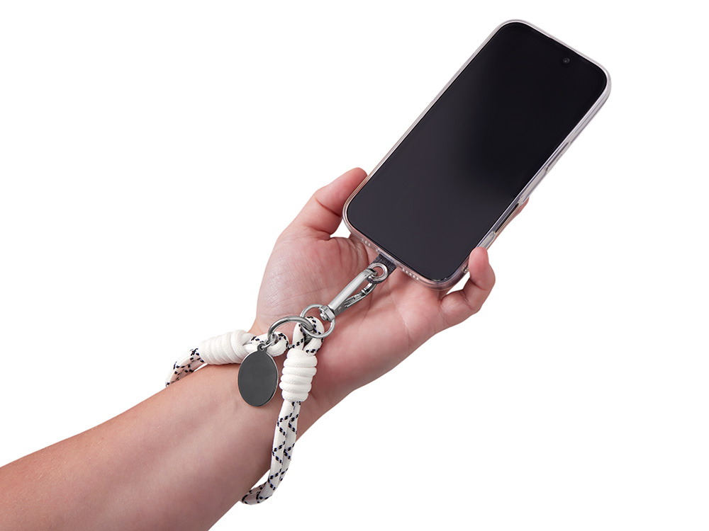 Брелок-браслет Bohemian c тканевым держателем для телефона, бело-черный