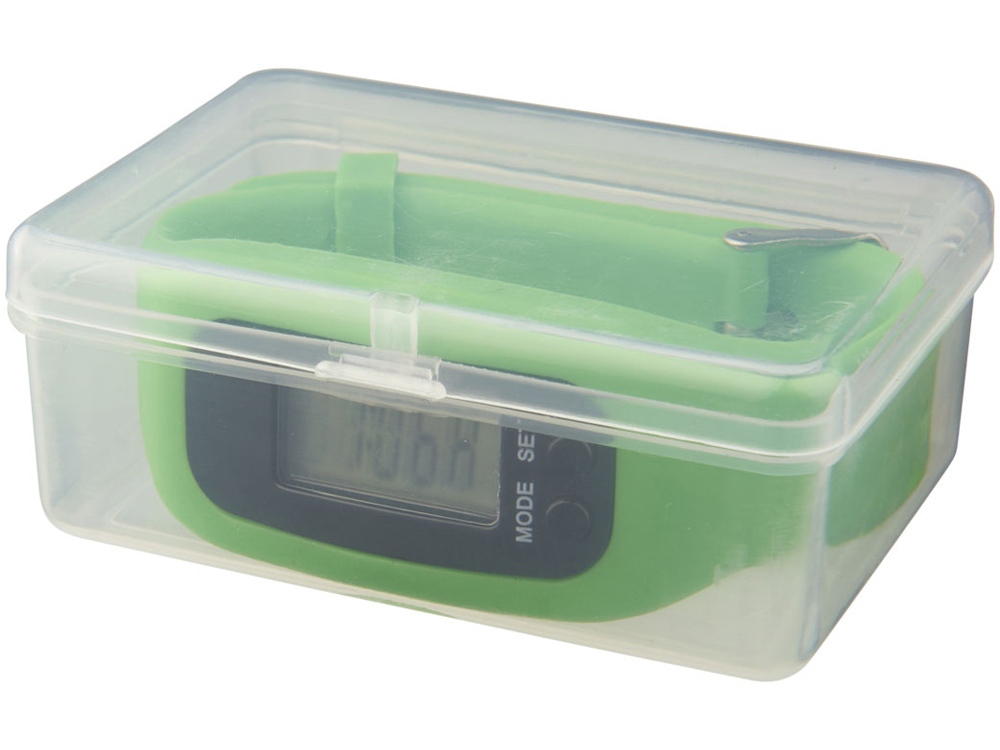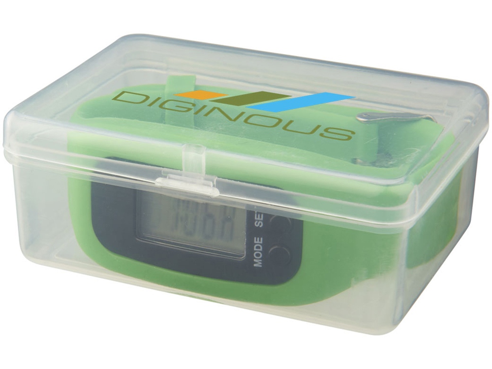 Смарт часы с шагомером Get-Fit. Силиконовые смарт часы с металлической застежкой, кнопками для изменения настроек и 5-ти разрядным цифровым диодным дисплеем. Функции: часов, будильника, подсчета шагов и сожженных калорий. Настройки можно использовать как для метрических так и для имперских единиц. Упакованы в пластиковую коробку, которую можно использовать для нанесения. Батарейки в комплекте. Силикон.