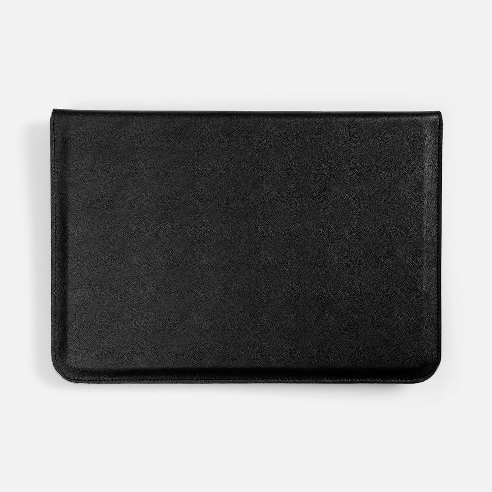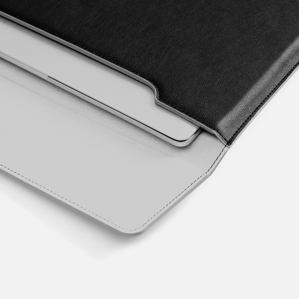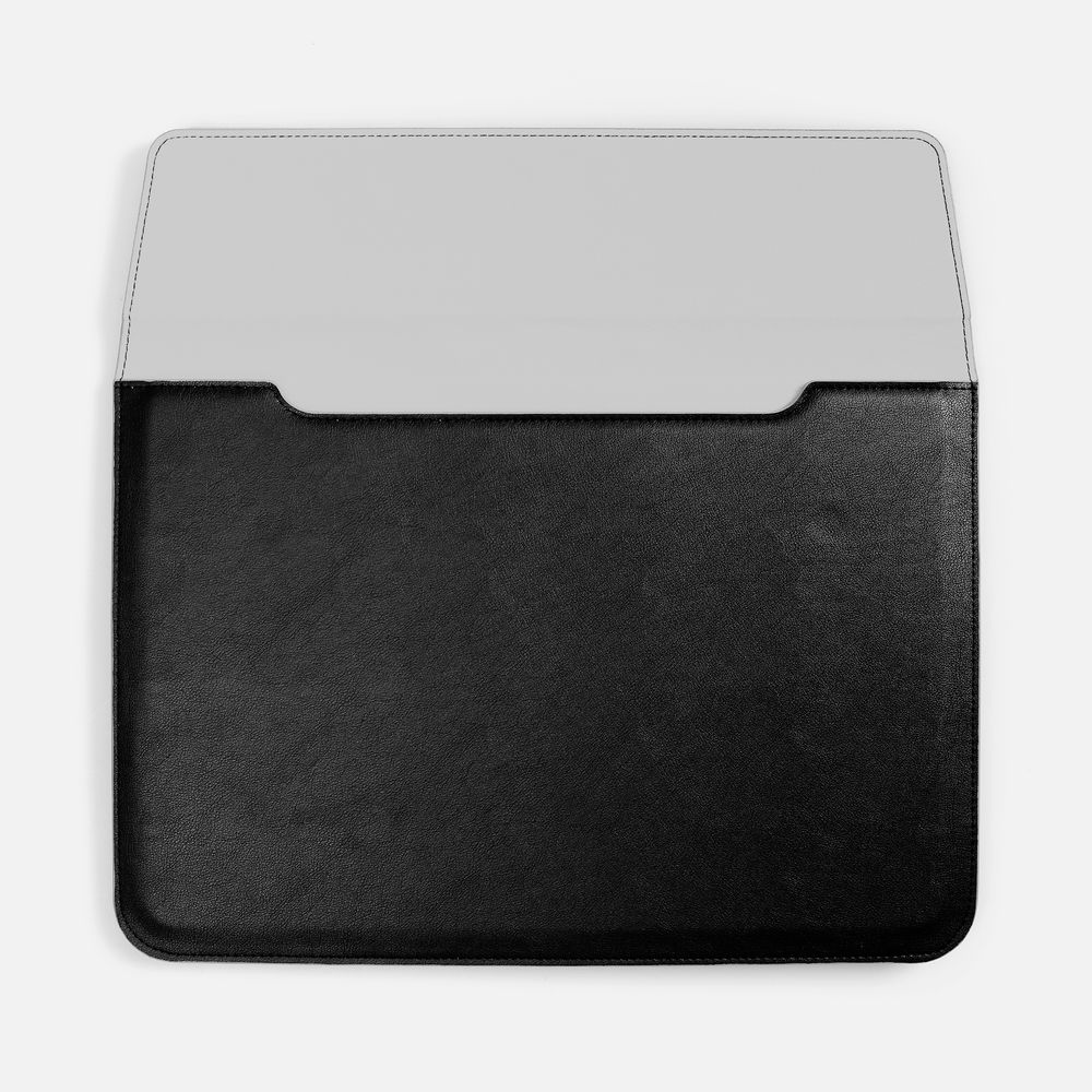 Чехол для ноутбука с диагональю до 15,6 выполнен из материала Petrus, зеленого цвета, дополнен окрашенным срезом края серого цвета.