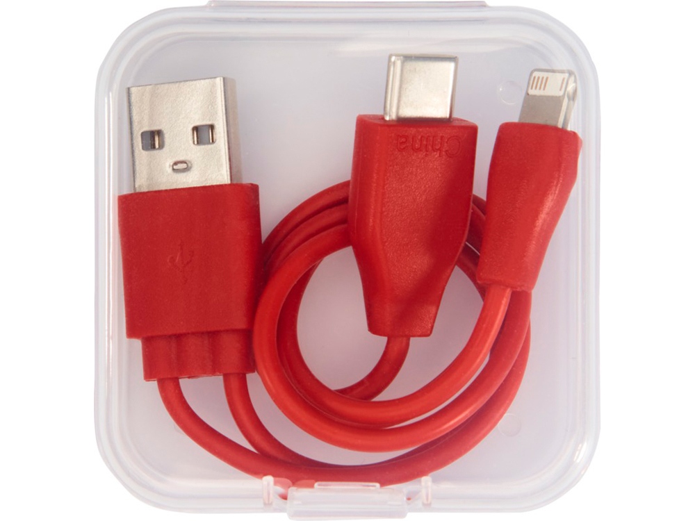 Зарядный кабель 3-в-1 оснащен разъемом USB типа С и двойным разъемом 2-в-1, подходящим для устройств как на Apple® iOS, так и на Android. Micro USB и разъем 2-в-1 до 2 А. Разъем Type-C до 3 А. Поставляется в защитном футляре.