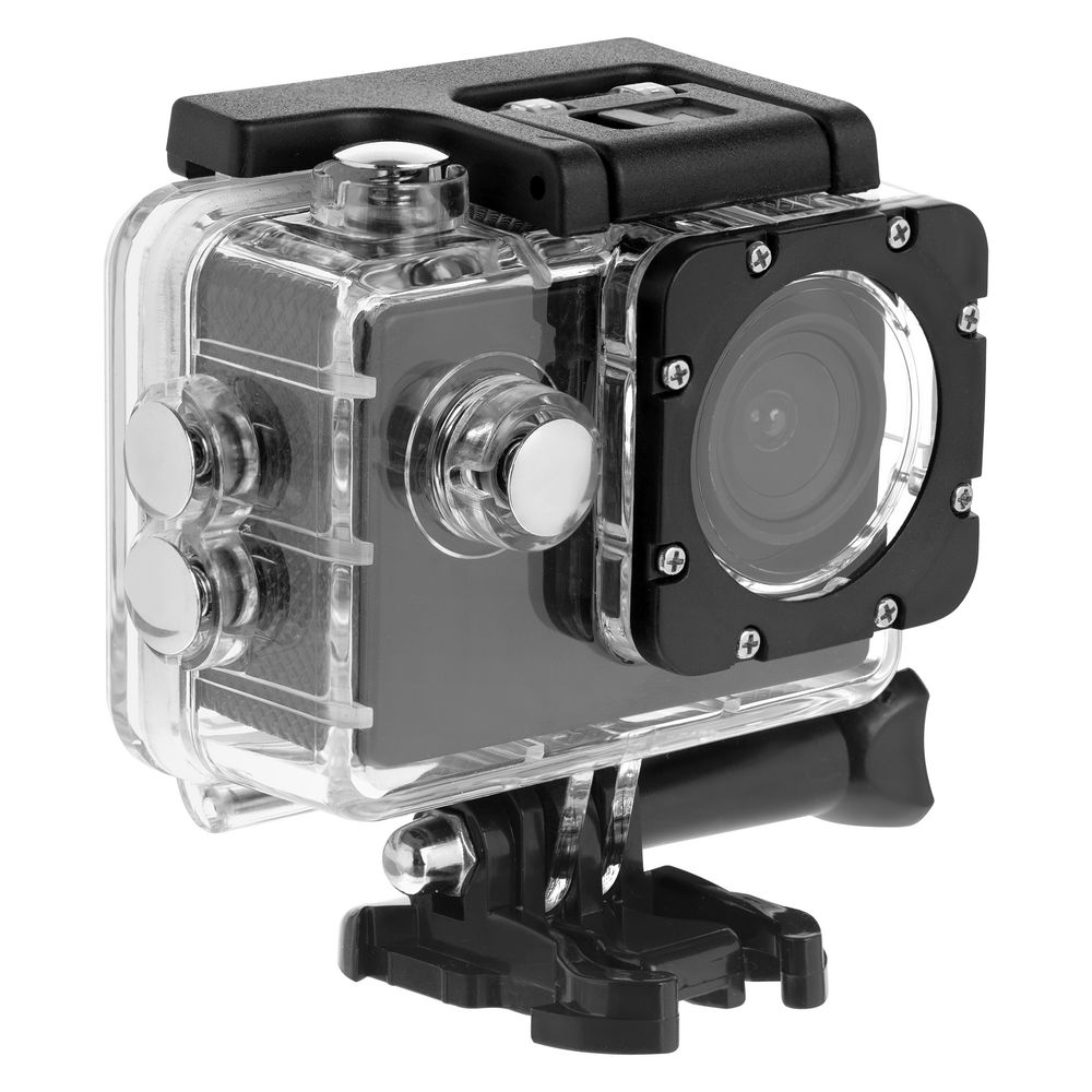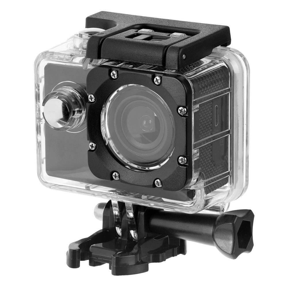 - Комплект аксессуаров: водонепроницаемый бокс для подводной съемки (до 30 метров), крепление на руль велосипеда, крепление на шлем, рамка, крепления с винтами, ремни (2 шт.), липучка (2 шт.).