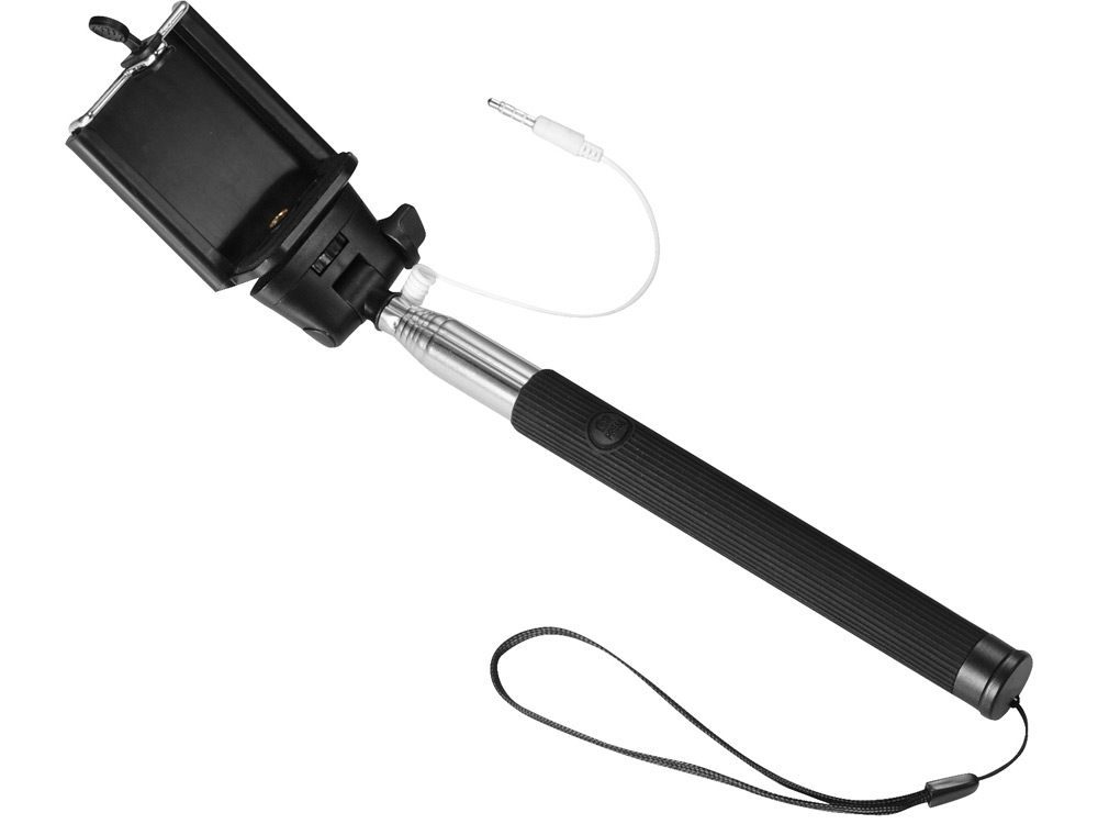Проводной монопод. Сделайте идеальный селфи с этим выдвижным моноподом (до 90 см). Не требует батареи или использования приложения. Просто подключите 3,5 мм аудио разъем в телефон (совместим со всеми мобильными телефонами IOS) и нажмите на кнопку, расположенную на ручке. Регулируемый держатель телефона подходит для всех смартфонов. Силикон, сталь и ПВХ.