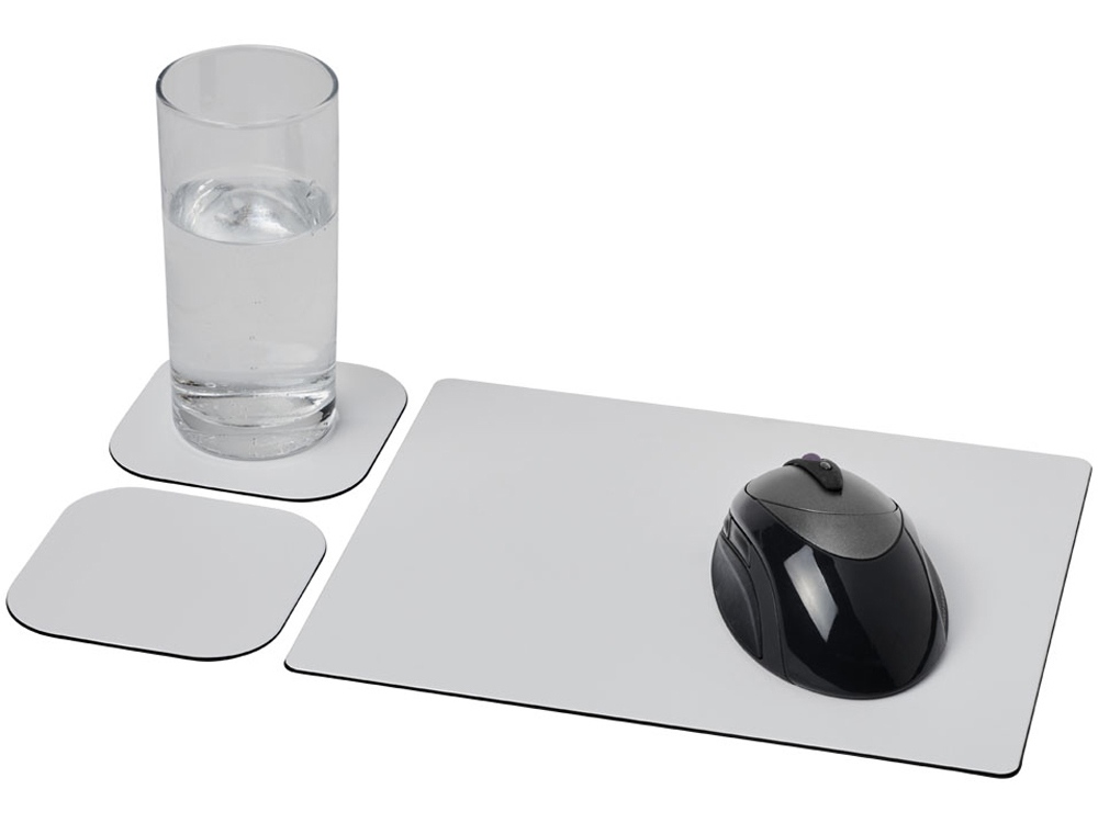 Комплект Q-Mat® из коврика для мыши и подставки 3. Особенности: коврик для мыши Q-Mat® и набор из двух соответствующих подставок с фирменным дизайном вашей компании. Набор состоит из прямоугольного коврика для мыши (0,3 х 23,5 х 20 см) и двух квадратных подставок (0,3 x 9,8 x 9,8 см). Вспененный полиэтилен ЭВА с ламинированной бумагой .