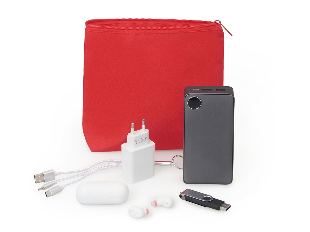 Органайзер для электроники и проводов Amalia из полиэстера 300D с подкладкой, красный