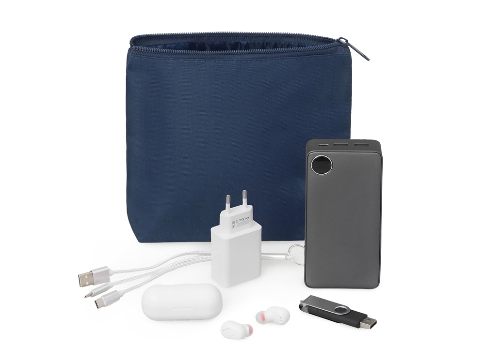 Органайзер для электроники и проводов Amalia из полиэстера 300D с подкладкой, темно-синий