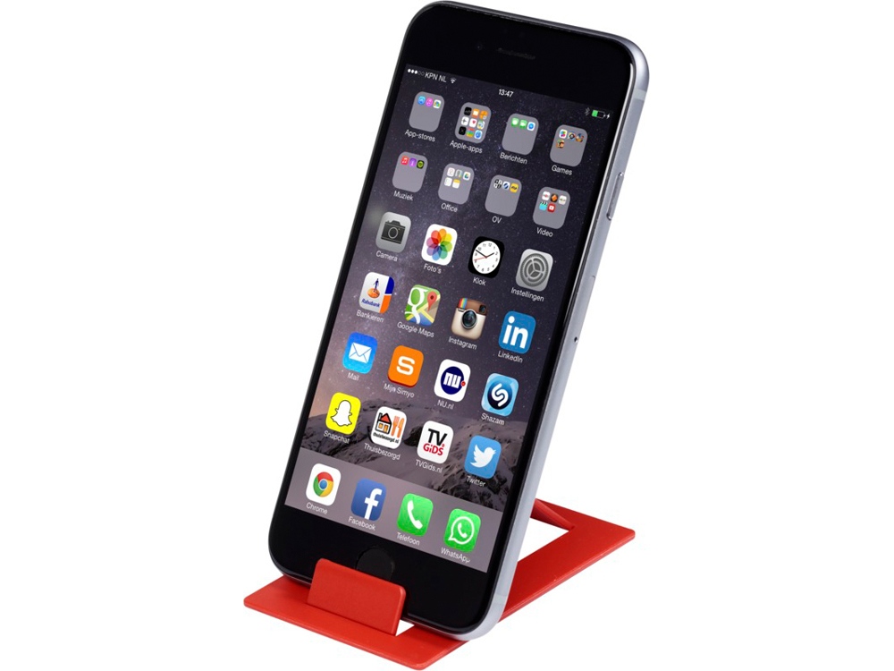 Складывающаяся подставка для телефона Hold. Складывающаяся подставка для телефона Hold представляет собой очень маленький мультимедийный держатель. Она может поместиться в большинстве кошельков, поскольку выполнена в форме кредитной карты. Она прочная и устойчивая, всегда открывается под прямым углом для идеального обзора экрана смартфона. Почти вся поверхность пригодна для нанесения изображений, что позволяет обеспечить великолепный внешний вид. Произведено в ЕС. Пластик.