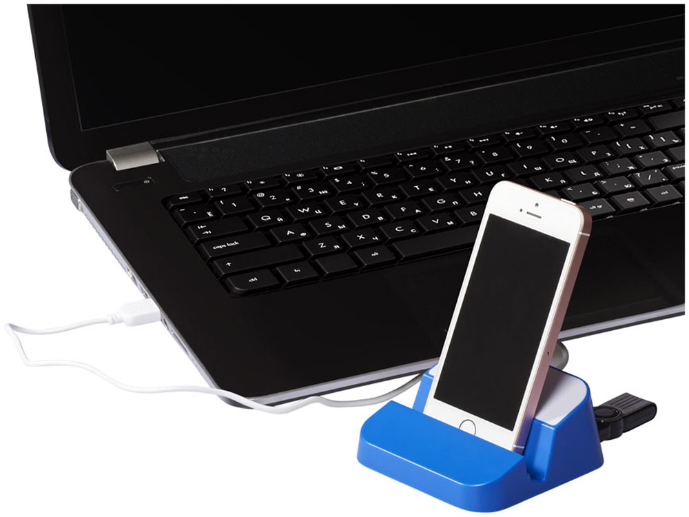 Подставка для телефона и ЮСБ хаб Hopper 3 в 1, ярко-синий