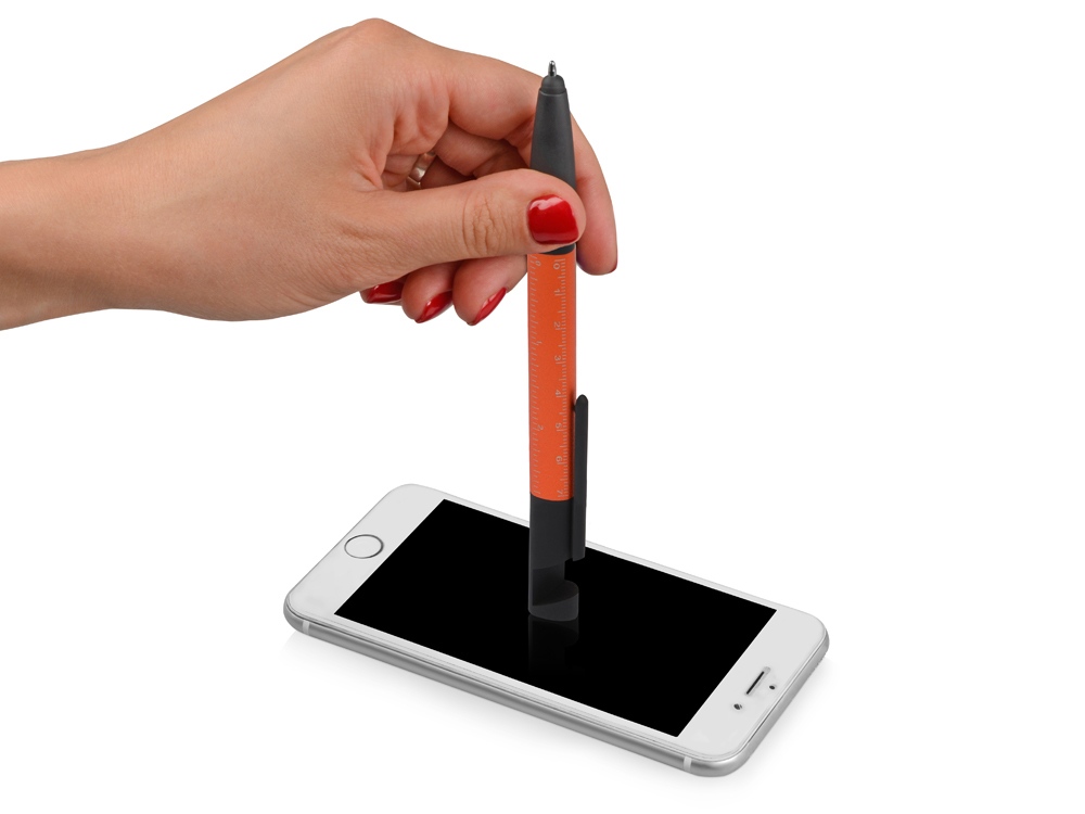 Ручка-стилус металлическая шариковая многофункциональная (6 функций) Multy, оранжевый