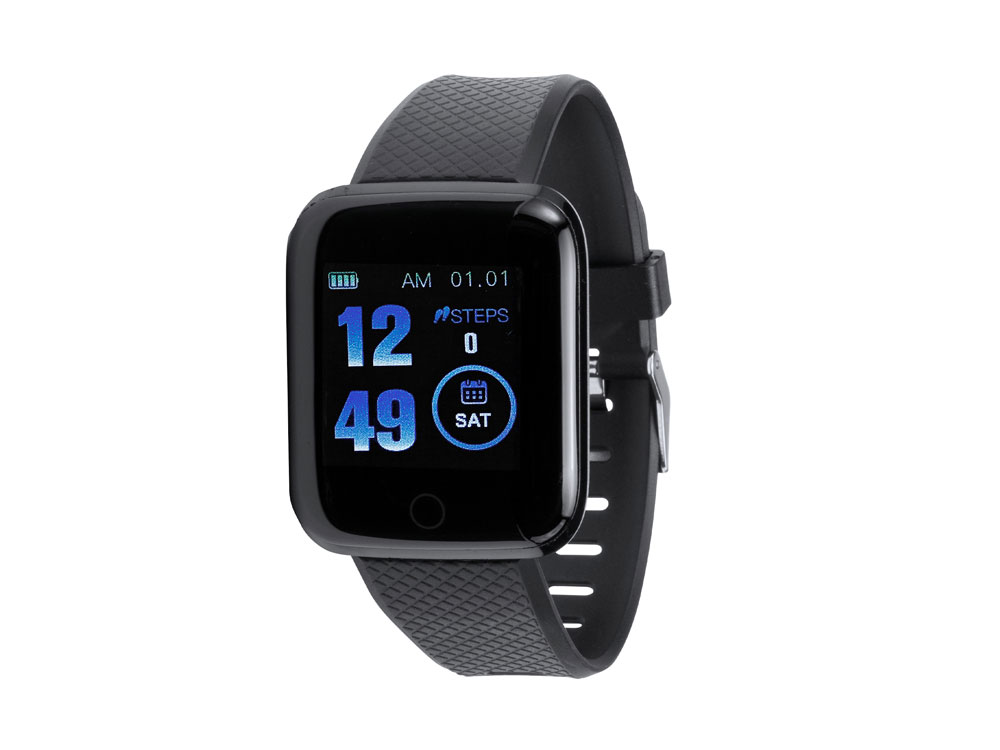 Смарт-часы. Корпус из TPU и 1,3-дюймовый цветной TFT-дисплей со встроенной USB-зарядкой. Регулируемый силиконовый ремешок и металлическая пряжка. Контроль сердечного ритма. Bluetooth-соединение с APP для iOS и Android.