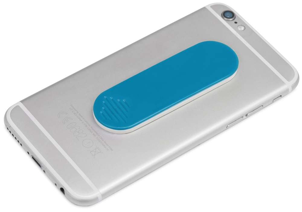 Сжимаемая подставка для смартфона. Для дополнительной устойчивости при наборе текста или использовании стилуса в пути вставьте палец в подставку. Стикер на задней поверхности изделия позволяет крепить его к телефону. АБС-пластик.