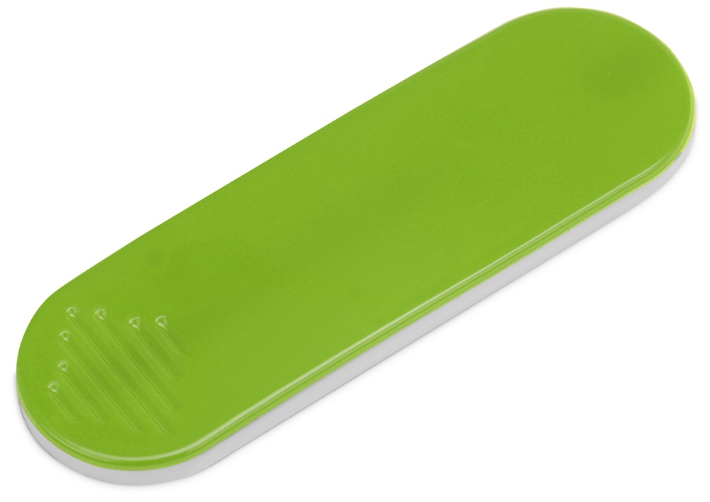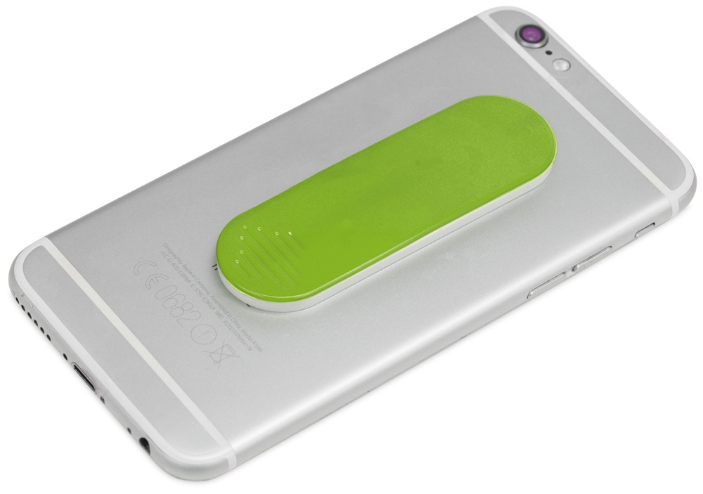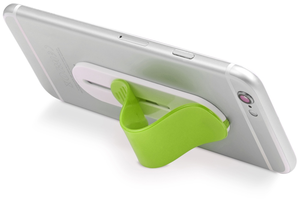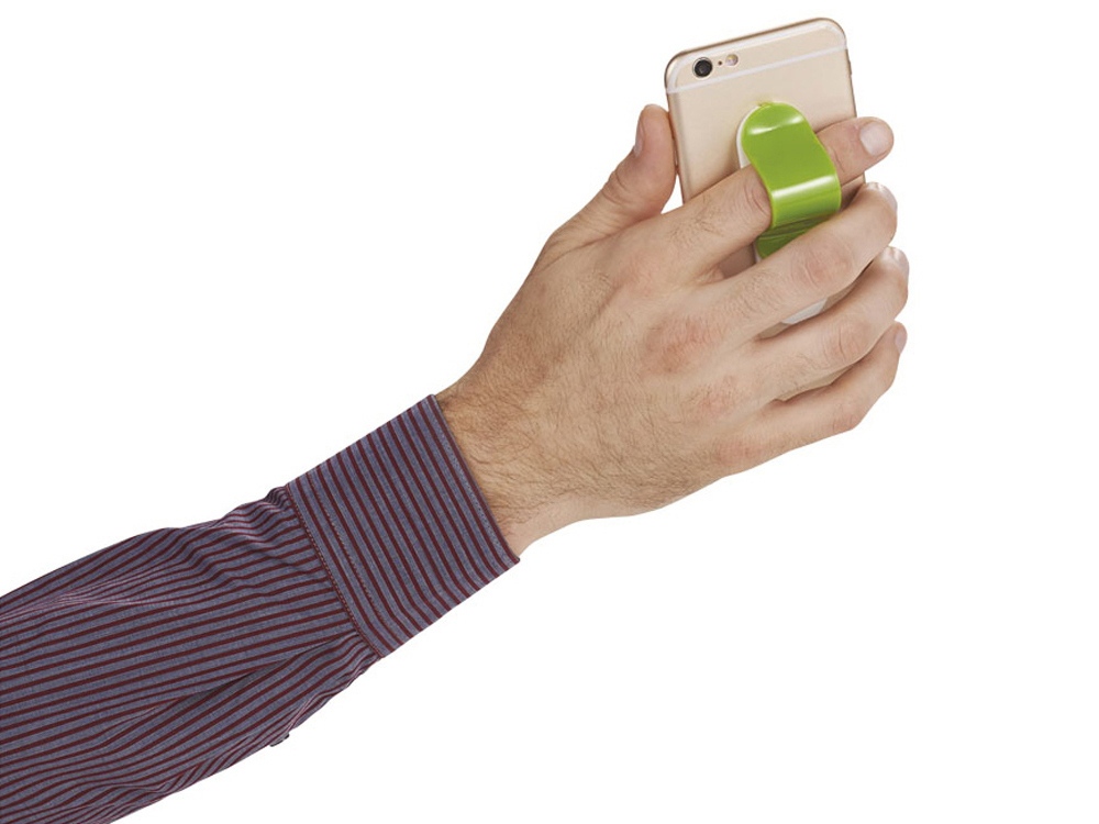 Сжимаемая подставка для смартфона. Для дополнительной устойчивости при наборе текста или использовании стилуса в пути вставьте палец в подставку. Стикер на задней поверхности изделия позволяет крепить его к телефону. АБС-пластик.