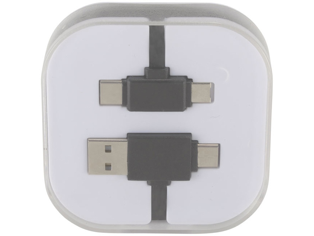 Кабель для зарядки 4-в-1 двух типов C: 1 USB типа A и 2-в-1 двухконтактных наконечников для устройств Apple iOS и Android. Используются как зарядка, так и передача данных. Чтобы зарядить устройства Apple, поместите кабель стороной, у которой нет контактов в устройстве, чтобы зарядить устройства Android, поместите кабель со стороны, в которой есть контакты в устройстве.