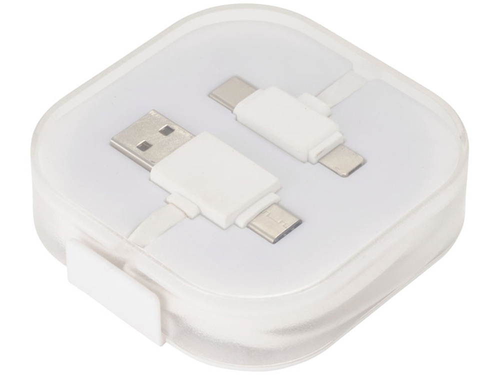 Кабель для зарядки 4-в-1 двух типов C: 1 USB типа A и 2-в-1 двухконтактных наконечников для устройств Apple iOS и Android. Используются как зарядка, так и передача данных. Чтобы зарядить устройства Apple, поместите кабель стороной, у которой нет контактов в устройстве, чтобы зарядить устройства Android, поместите кабель со стороны, в которой есть контакты в устройстве.