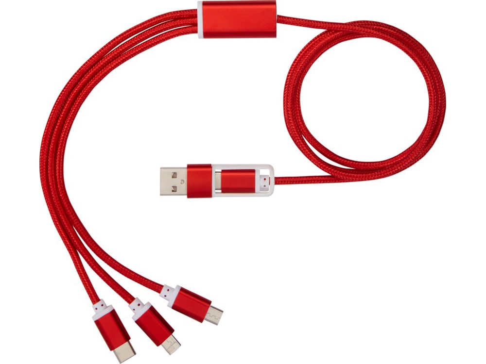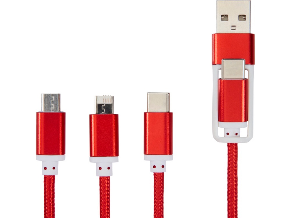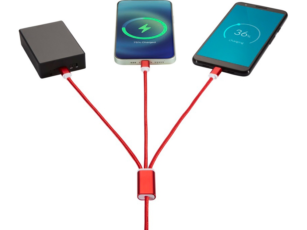 Универсальный зарядный кабель 3-в-1 с двойным входом, красный