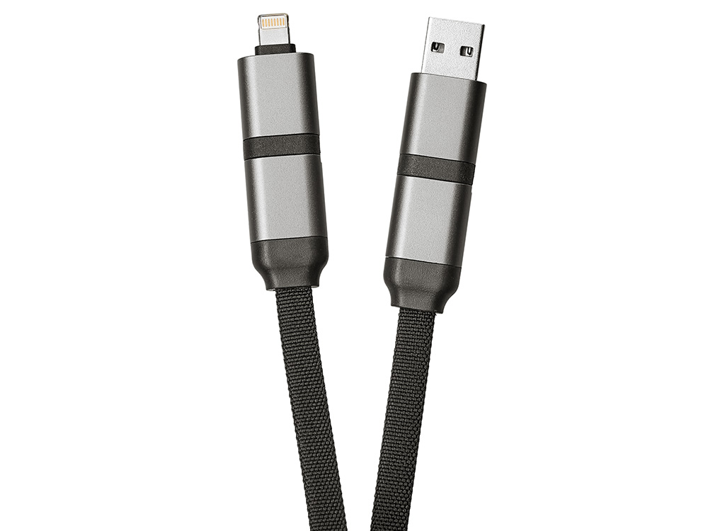 - Универсальность на каждый день — 2 входа (USB-C / USB-A) + 2 выхода (USB-C / Lightning) = один кабель для всех устройств.