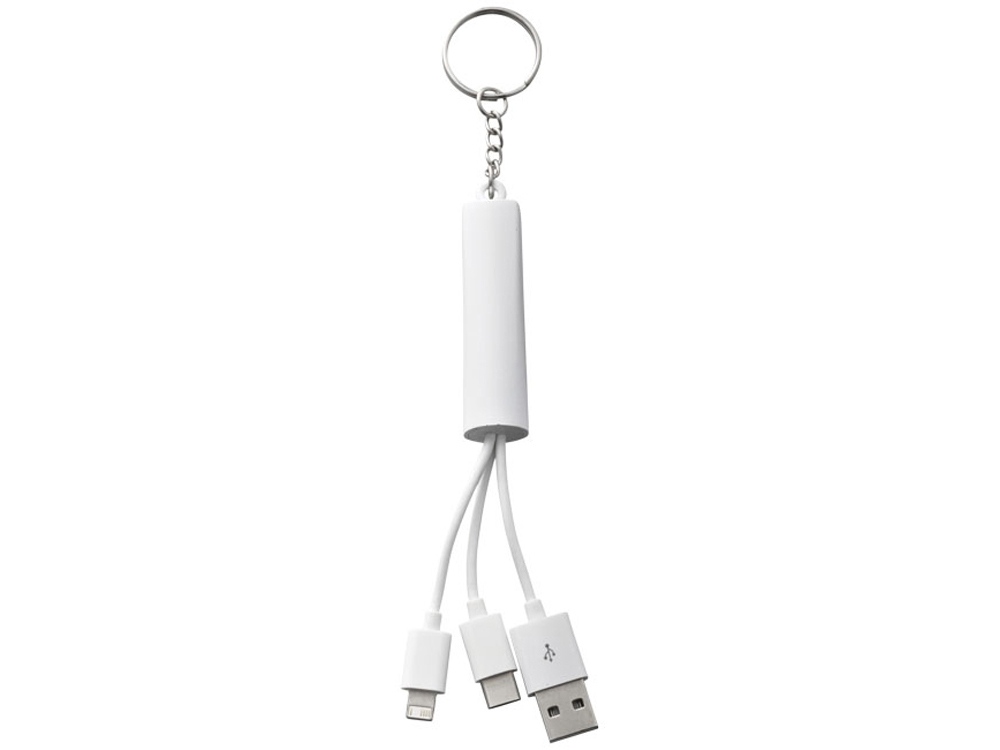 Светодиодный кабель для зарядки Route 3-в-1 с брелоком. Кабель для зарядки Route 3-в-1 с коннекторами 1 type C, 1 USB type A и двойным совместимым коннектором 2-в-1 для устройств с ОС Apple® iOS и Android. Кабель светится во время зарядки и имеет брелок. Для зарядки устройств Apple подключайте кабель стороной без контактов; для зарядки устройств с ОС Android подключайте кабель стороной с контактами. АБС-пластик. 3.