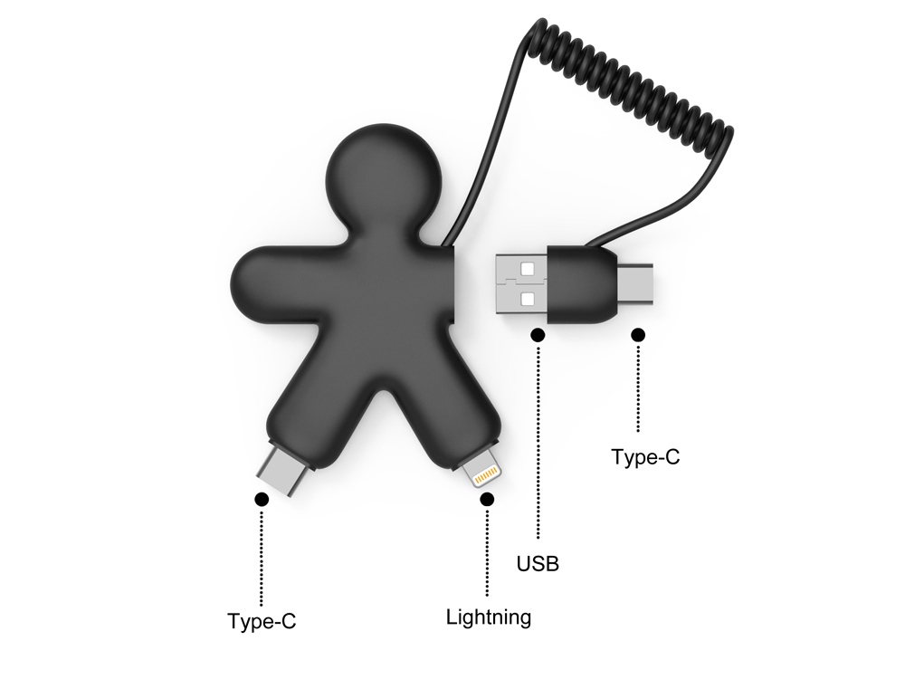 Этот кабель готов стать вашим подзаряжающим приятелем! Заряжайте ваши устройства где угодно и когда угодно! Наслаждайтесь путешествиями с вашим Buddy Cable. В нем есть все нужные вам адаптеры. Кабель может заряжать устройства как с iOS так и с Android, он имеет два разъема (USB и Type-C) для полной свободы. Спиральный шнур придает уникальности дизайну и делает зарядку такой удобной!
