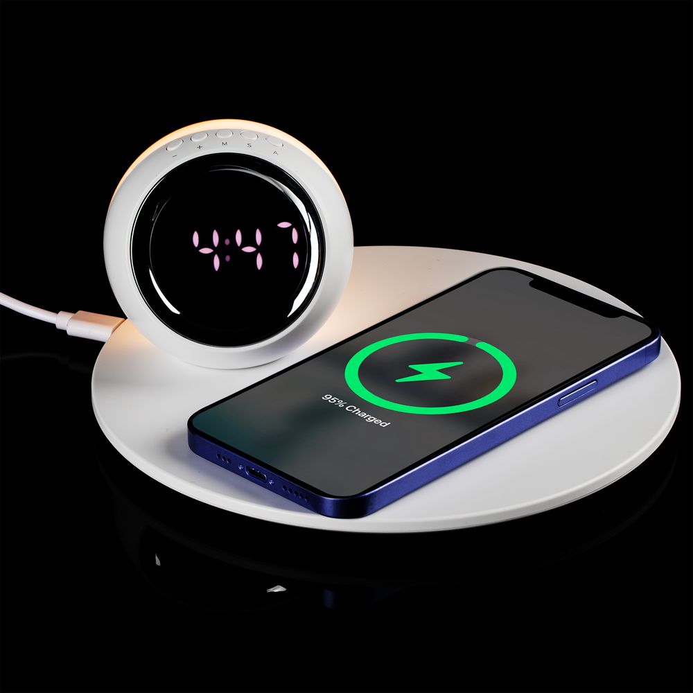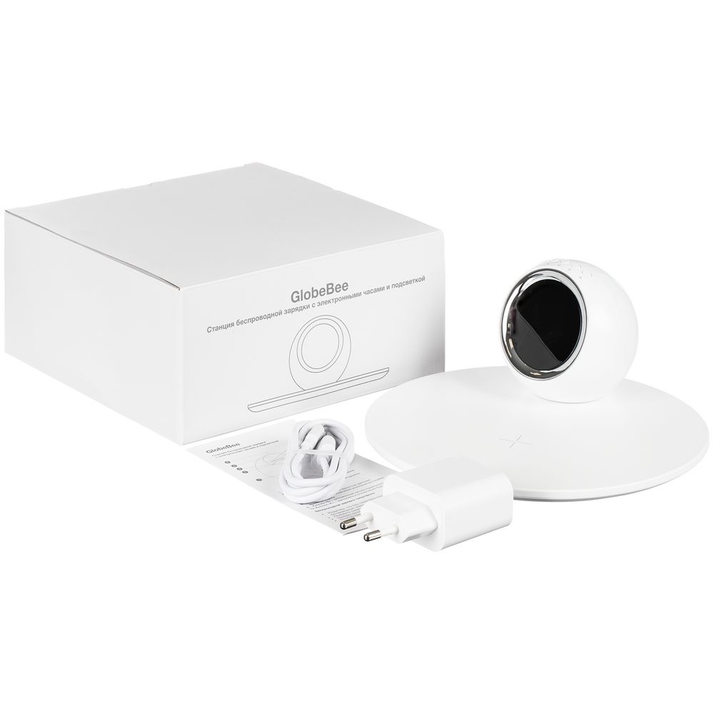 Модель : Станция беспроводной зарядки с часами и подсветкой GlobeBee, белая