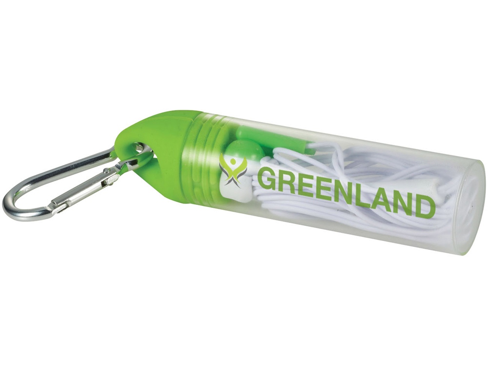 Наушники Earbuds включают в себя встроенный микрофон и регулятор громкости, которые позволяют принимать звонки и управлять музыкой. Длина кабеля 1,20м. Складываются в удобный пластиковый контейнер с карабином, на котором удобно делать нанесение.