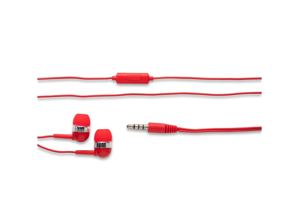 Наушники со встроенным микрофоном и кабелем длиной 1,20 м со входом 3,5 мм. Включает в себя 2 дополнительные пары силиконовых вставок (двух разных размеров). Поставляется в коробке из PS и ABS. 70 x 70 x 18 мм.