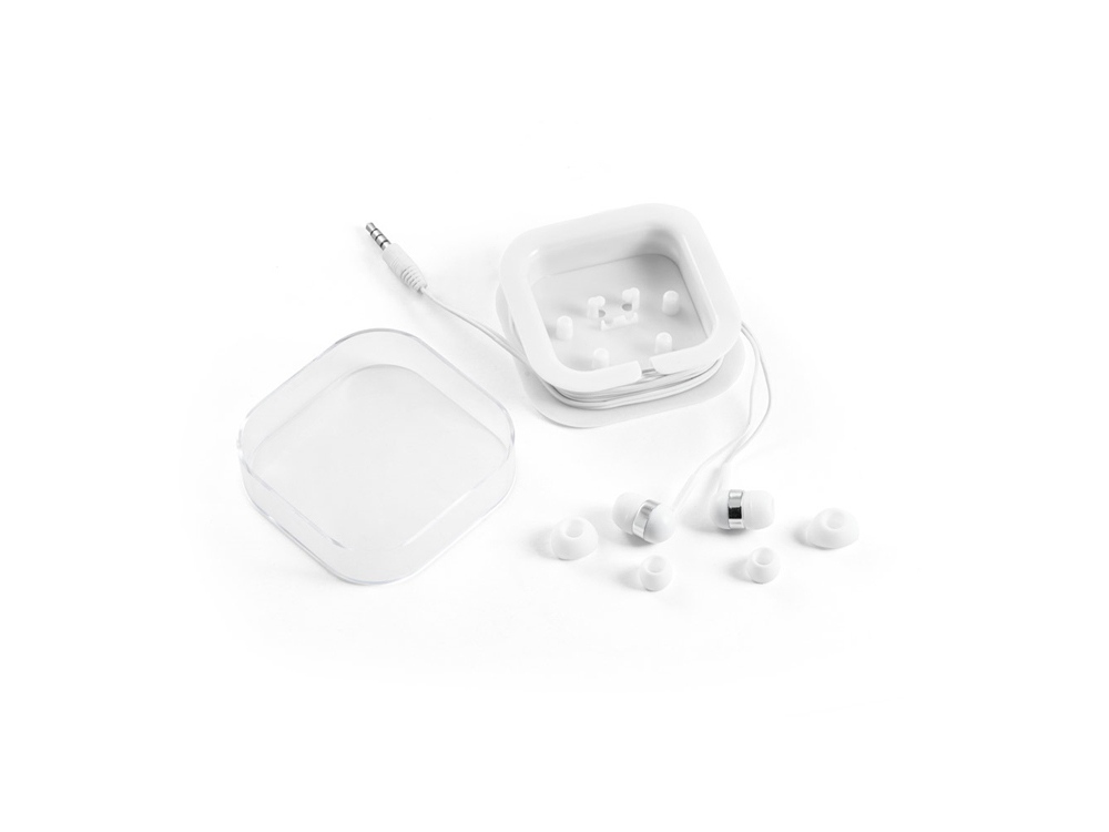 Наушники со встроенным микрофоном и кабелем длиной 1,20 м со входом 3,5 мм. Включает в себя 2 дополнительные пары силиконовых вставок (двух разных размеров). Поставляется в коробке из PS и ABS. 70 x 70 x 18 мм.
