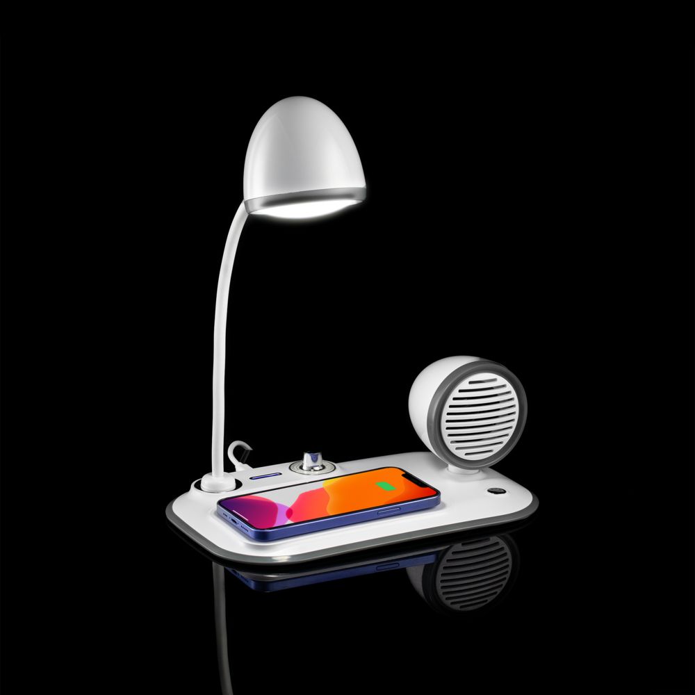 Модель : Лампа с колонкой и беспроводной зарядкой Flashback, белая