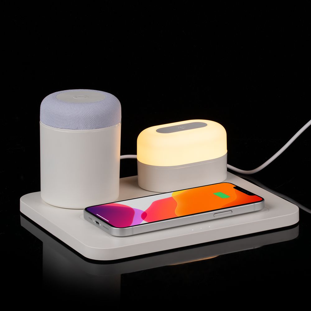 Модель : Станция беспроводной зарядки с колонкой и ночником Trilogy, белая