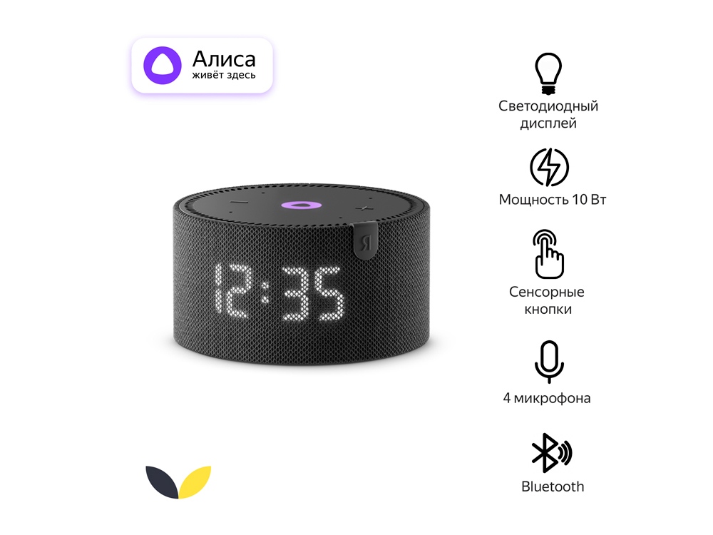 Умная колонка ЯНДЕКС Станция Мини с часами, 10 Вт, с Алисой, цвет: черный (YNDX-00020K)