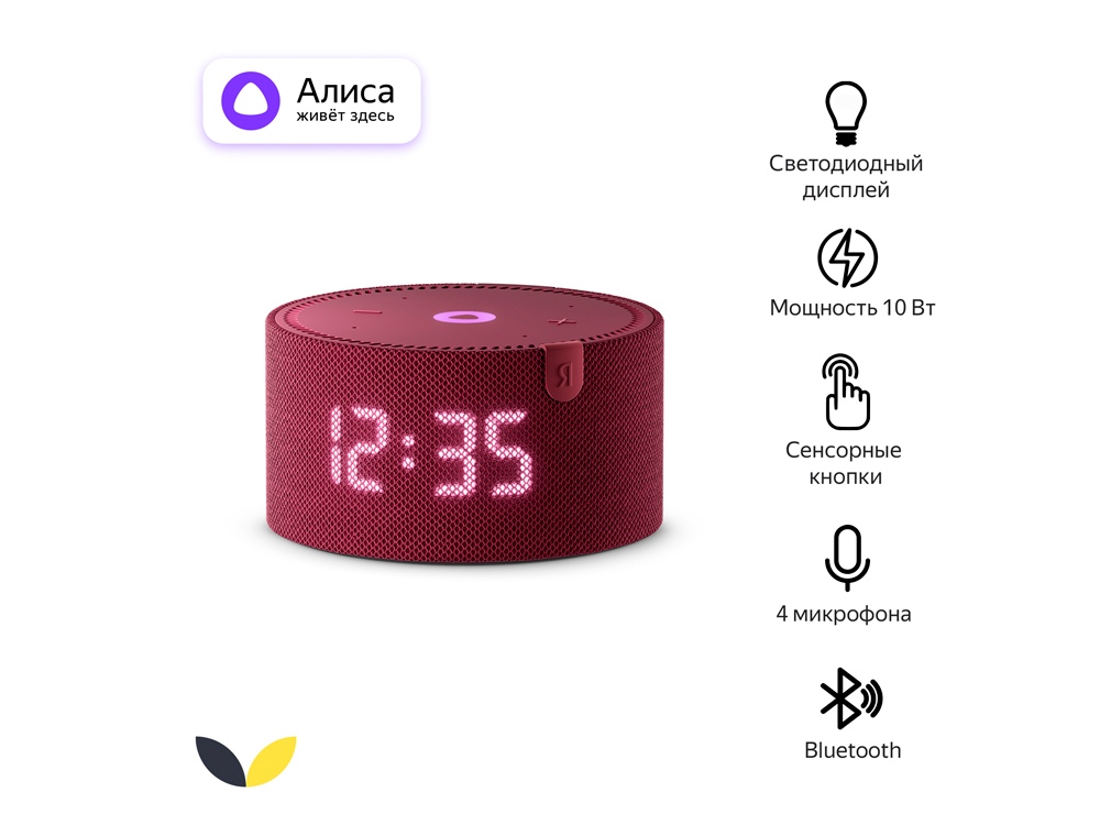 Умная колонка ЯНДЕКС Станция Мини с часами, 10 Вт, с Алисой, цвет: красный (YNDX-00020R)
