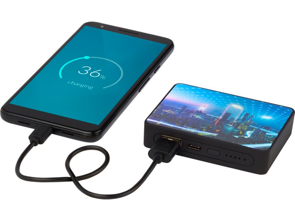 Беспроводное портативное зарядное устройство емкостью 5000 мАч с покрытием из закаленного стекла подходит для индивидуального оформления. Совместим со всеми устройствами с поддержкой Qi, такими как Android последнего поколения, iPhone 8 и выше. Индикатор питания, постоянно показывающий уровень энергии. Вход Тип-C 5V/2A, выход USB-A 5V/2A, беспроводной выход 5V/1A 5W. Изготовлен из пластика ABS с резиновым покрытием и закаленным стеклом на передней панели. В комплект входит зарядный кабель Тип-C из TPE-пластика без ПВХ. Поставляется в коробке. Пластик ABS, Стекло.