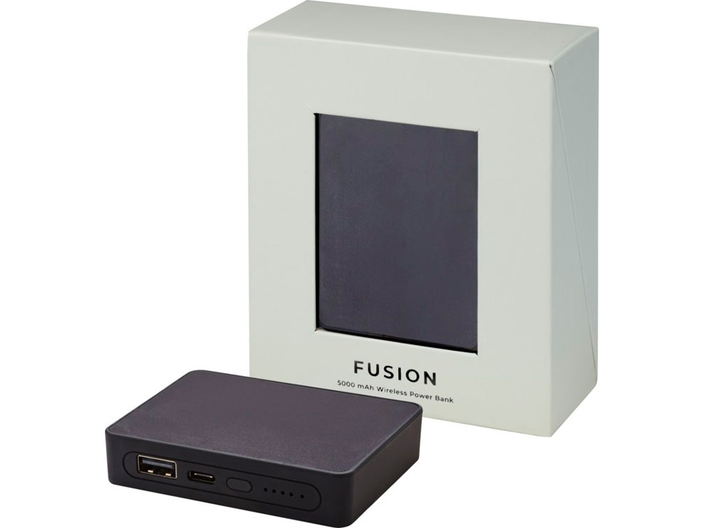 Беспроводное портативное зарядное устройство емкостью 5000 мАч Fusion, черный