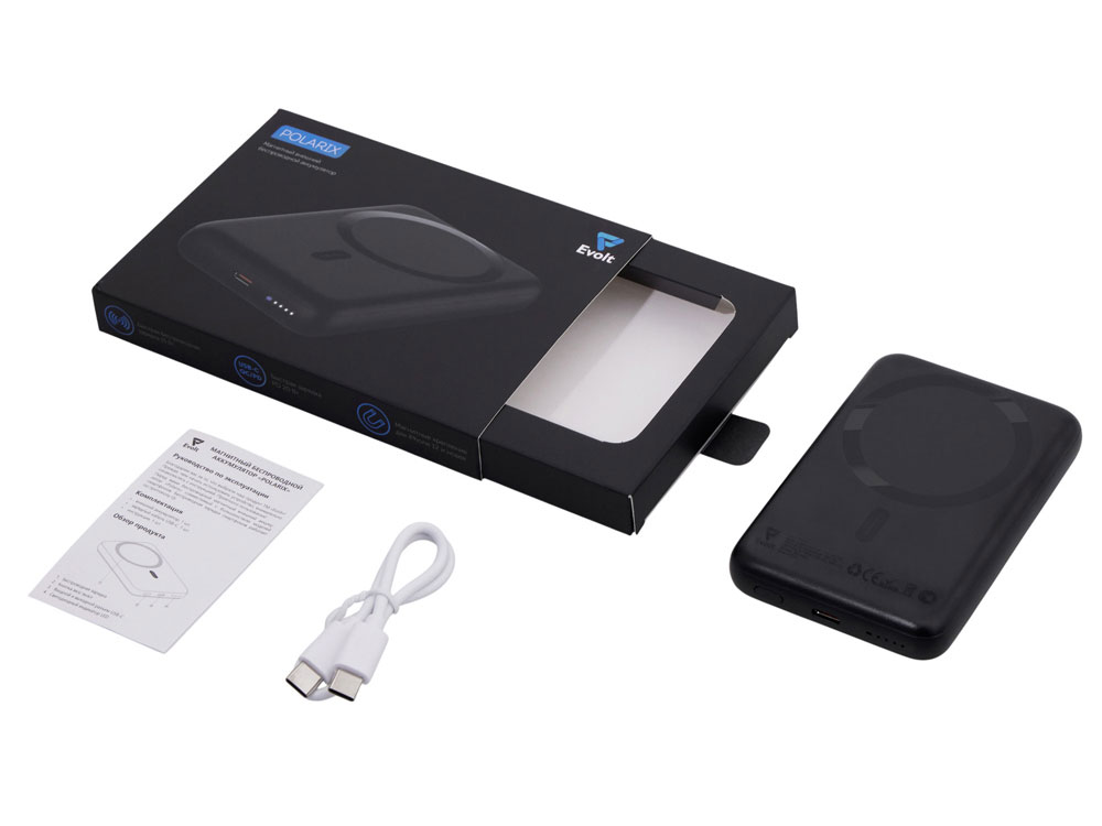Магнитный внешний беспроводной аккумулятор Polarix, QC/PD, 10000 мАч, черный