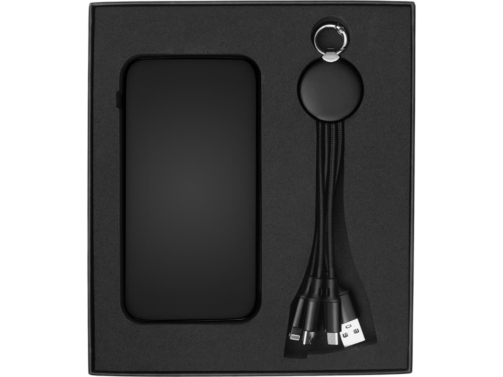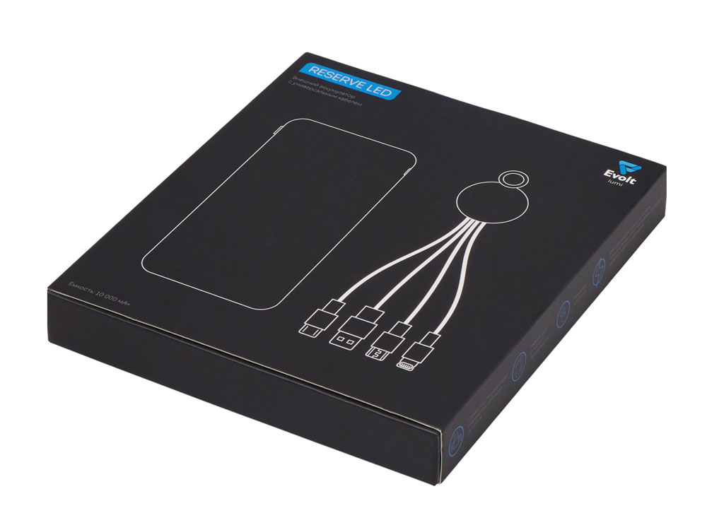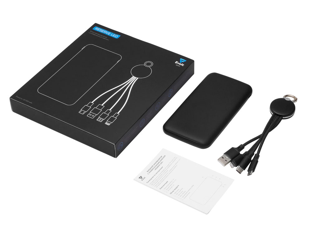 Набор из внешнего акуумулятора и универсального кабеля с подсветкой лого Reserve LED, 10000mAh, черный