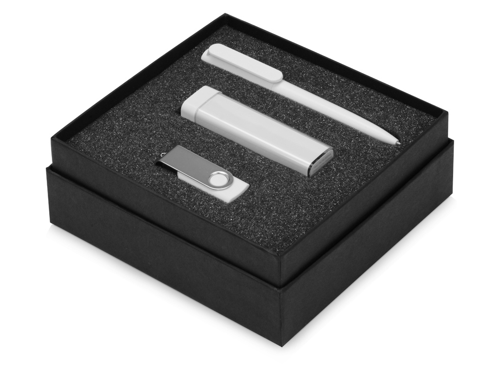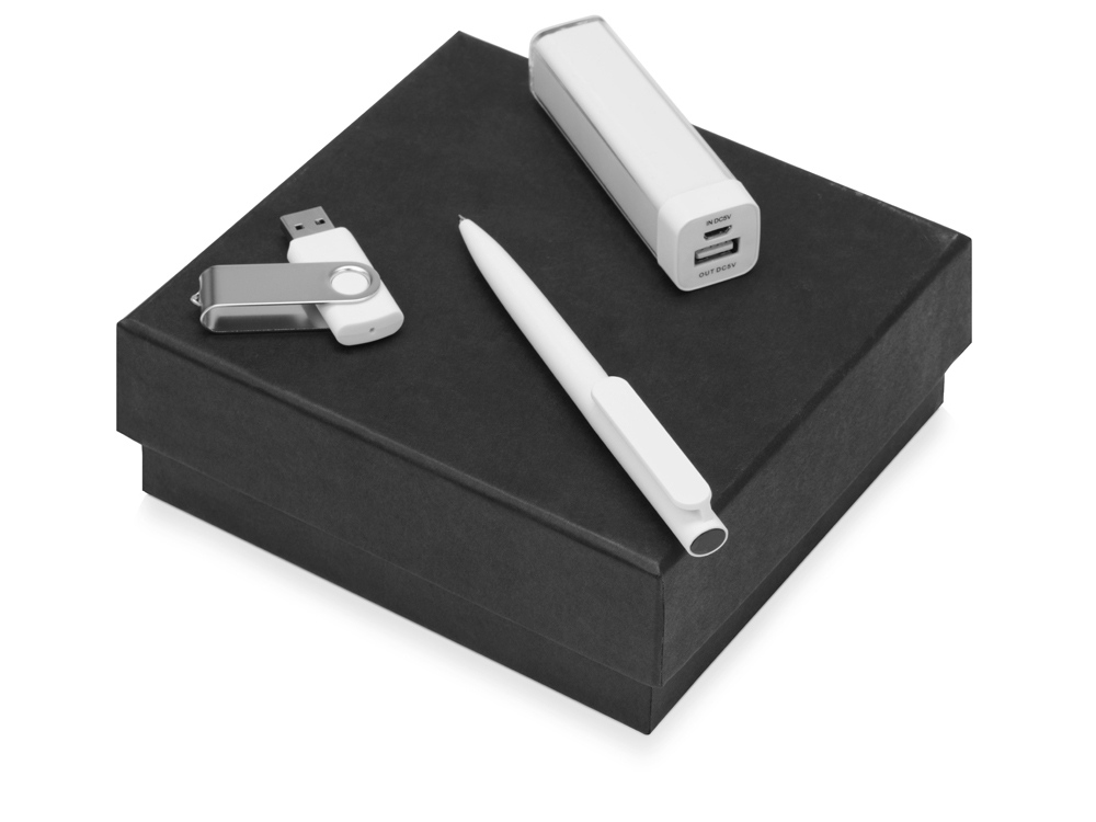 Подарочный набор On-the-go с флешкой, ручкой и зарядным устройством, белый