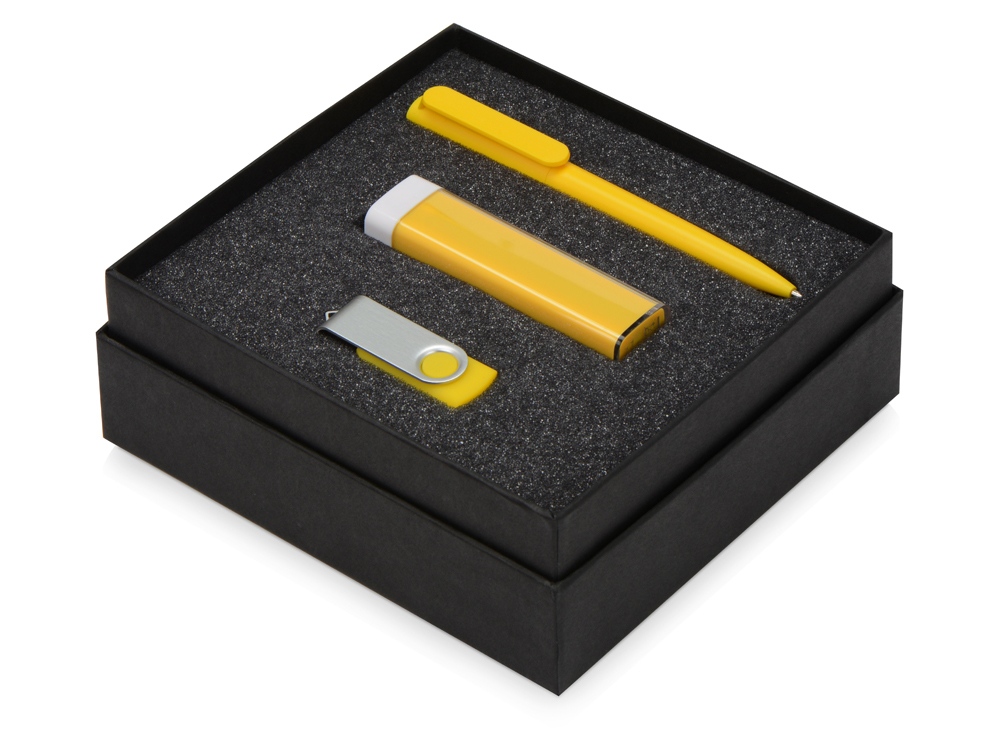 Подарочный набор On-the-go с флешкой, ручкой и зарядным устройством, желтый