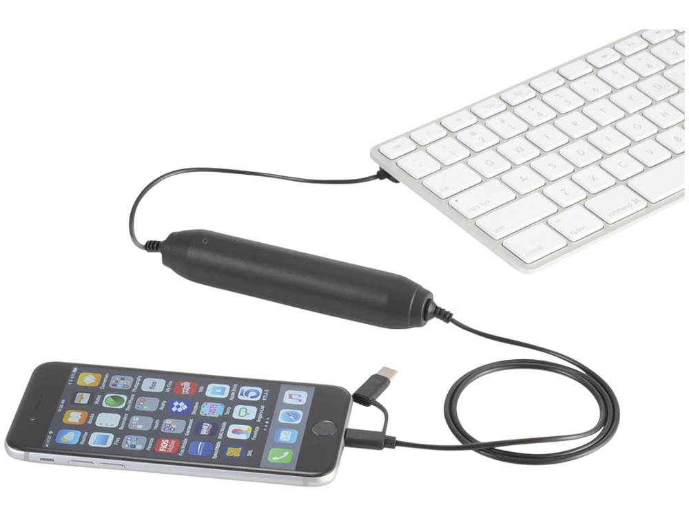 Портативное зарядное устройство, 2000 mAh/кабель 3 в 1, черный