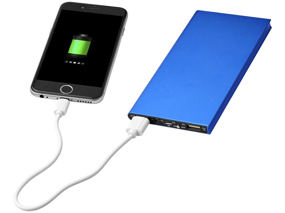 Алюминиевое портативное зарядное устройство Plate 8000 мАч. Алюминиевое портативное зарядное устройство Plate 8000 мА∙ч содержит литий-полимерную батарею на 8000 мА∙ч класса А и имеет тонкий корпус. Индикаторная светодиодная подсветка включается во время зарядки, а также показывает оставшийся заряд батареи в зарядном устройстве. Устройство поддерживает 5 В / 2 А на входе и выходе и изготовлено из прочного алюминия. В комплект входит кабель для зарядки (USB/Micro-USB). Поставляется в белой подарочной коробке Avenue. Алюминий.
