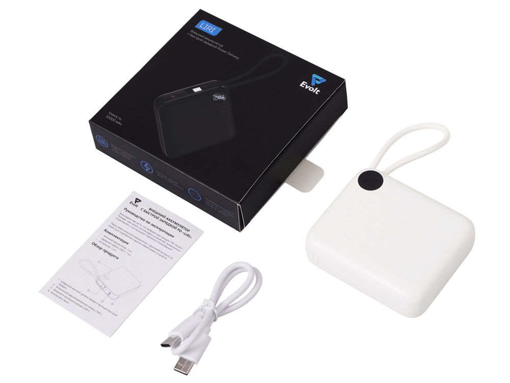 Внешний аккумулятор со встроенным кабелем Liri, QC/PD, 10000 мАч фото на сайте Print Logo.