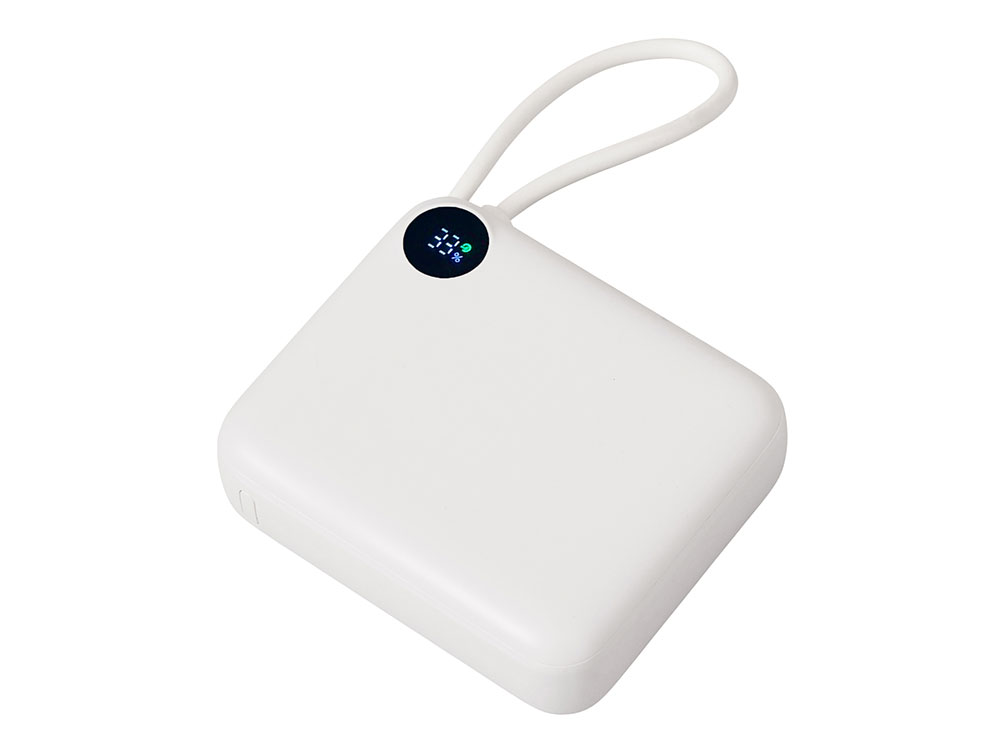 - Встроенный двунаправленный кабель-петелька USB-C —  всегда под рукой! Заряжает смартфоны по USB-C (в т.ч. новые iPhone), а также заряжается сам по встроенному кабелю.