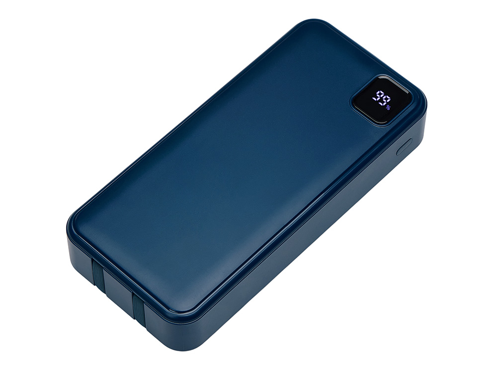 Внешний аккумулятор со встроенными кабелями Фрэйм Про, быстрая зарядка, 20000мач, тёмно-синий