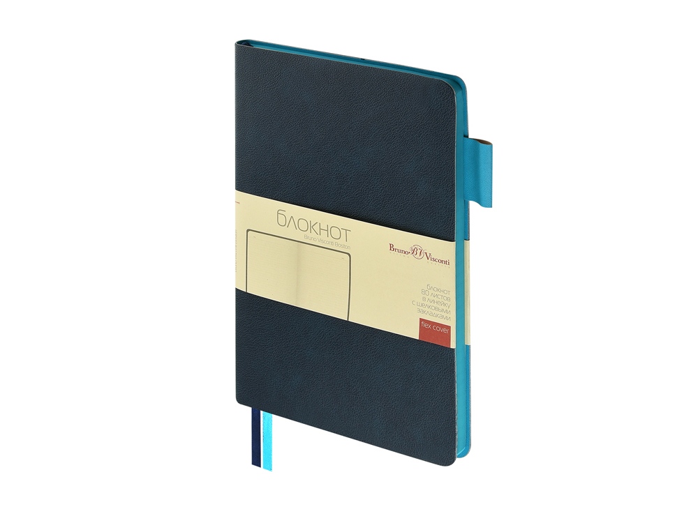 Гибкая (flex) обложка с углами закругленной формы, два ляссе в цвет обложки и среза и петля для ручки наделяют блокнот практичностью.