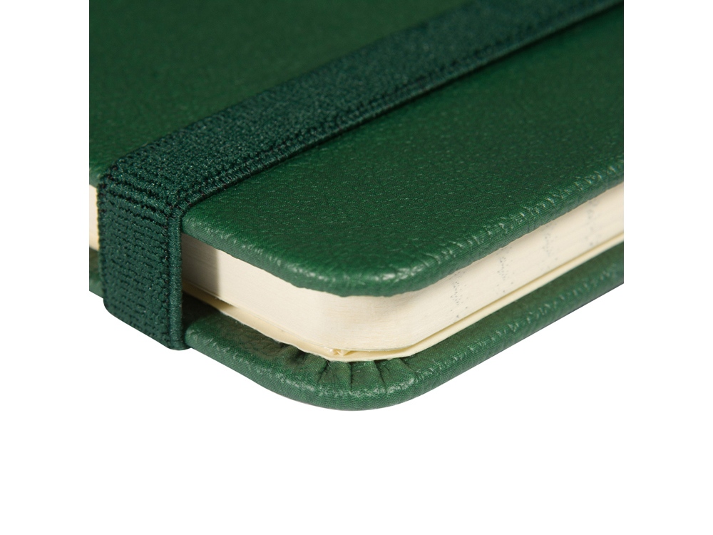 Твердая обложка с углами закругленной формы, фиксирующая резинка и ляссе в цвет обложки, петля для ручки и картонный карман для бумаги на внутренней стороне обложки наделяют блокнот практичностью.