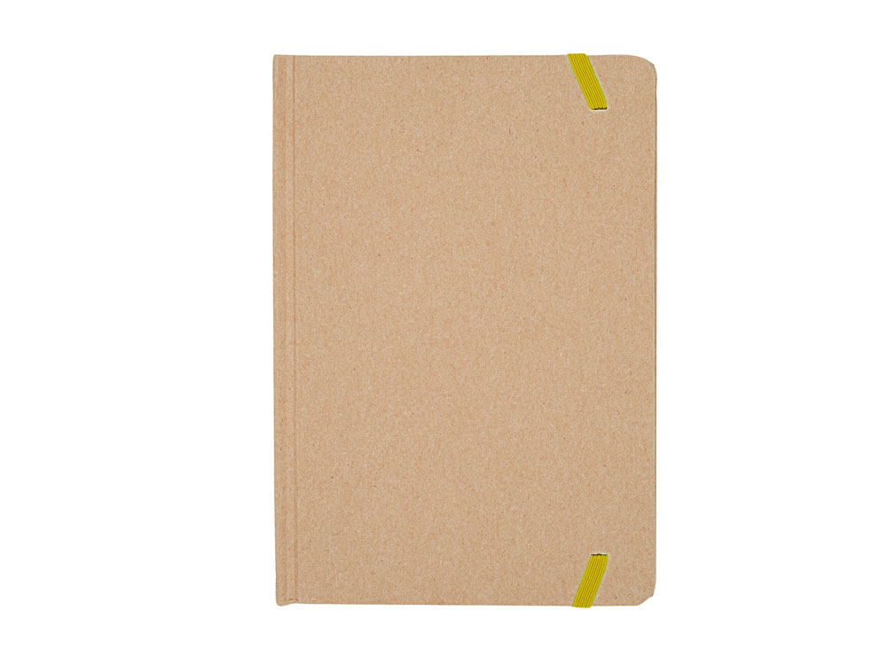 Блокнот формата А5. Твердая обложка из переработанного картона. Закладка и цветная резинка. 100 простых листов.