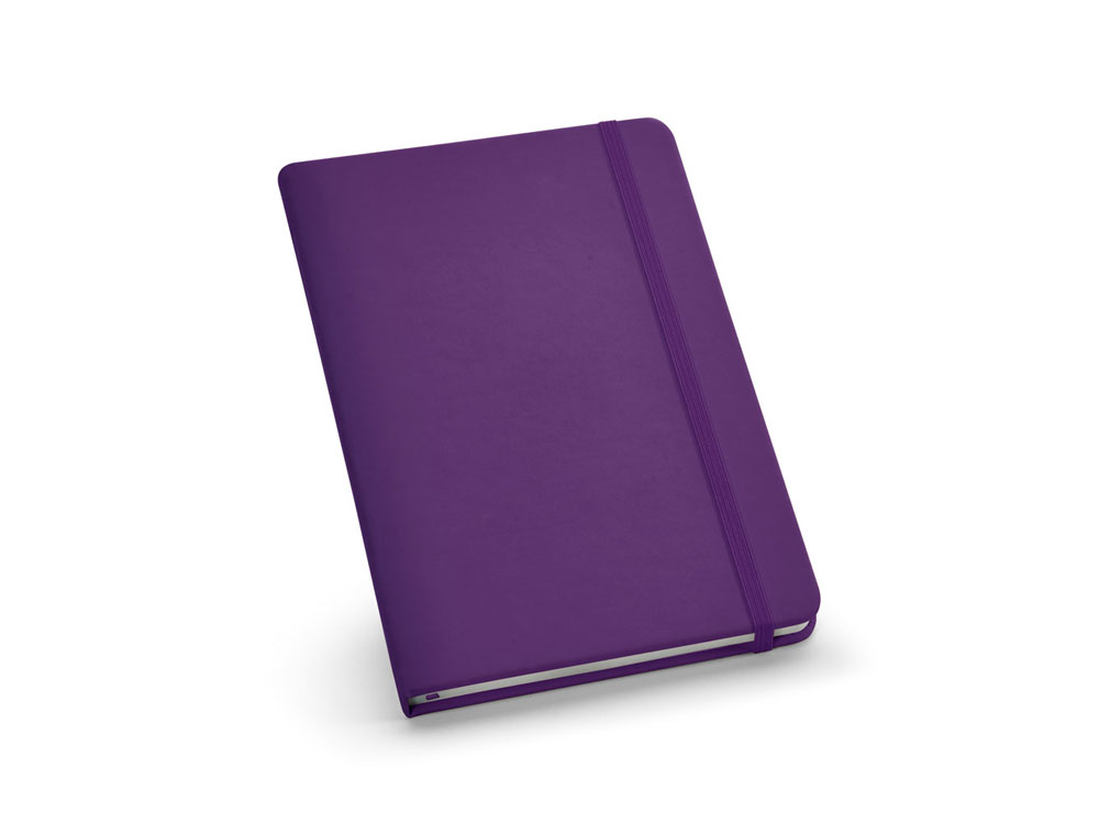 Блокнот формата A5, с 160 страницами без линовки, с твердой обложкой из искусственной кожи. Вид нанесения, рекомендуемый поставщиком: трансфер, трафаретная печать, уф- печать