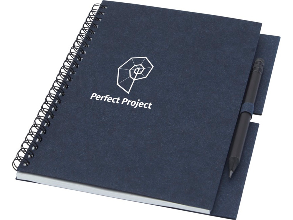 Блокнот Luciano Eco на пружине, с карандашом, средний, синий