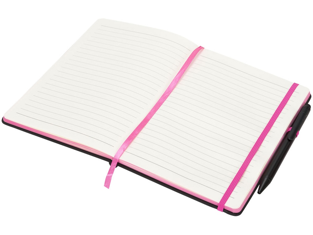 Блокнот Noir Edge среднего размера. Современный и стильный черный блокнот с мягкой на ощупь обложкой. Цветной край и цветные маркеры страниц, застежка-держатель для ручки. Предлагается с черной шариковой ручкой-стилусом. Блокнот содержит 96 листов линованной бумаги (70 г/м²) кремового цвета. ПУ.