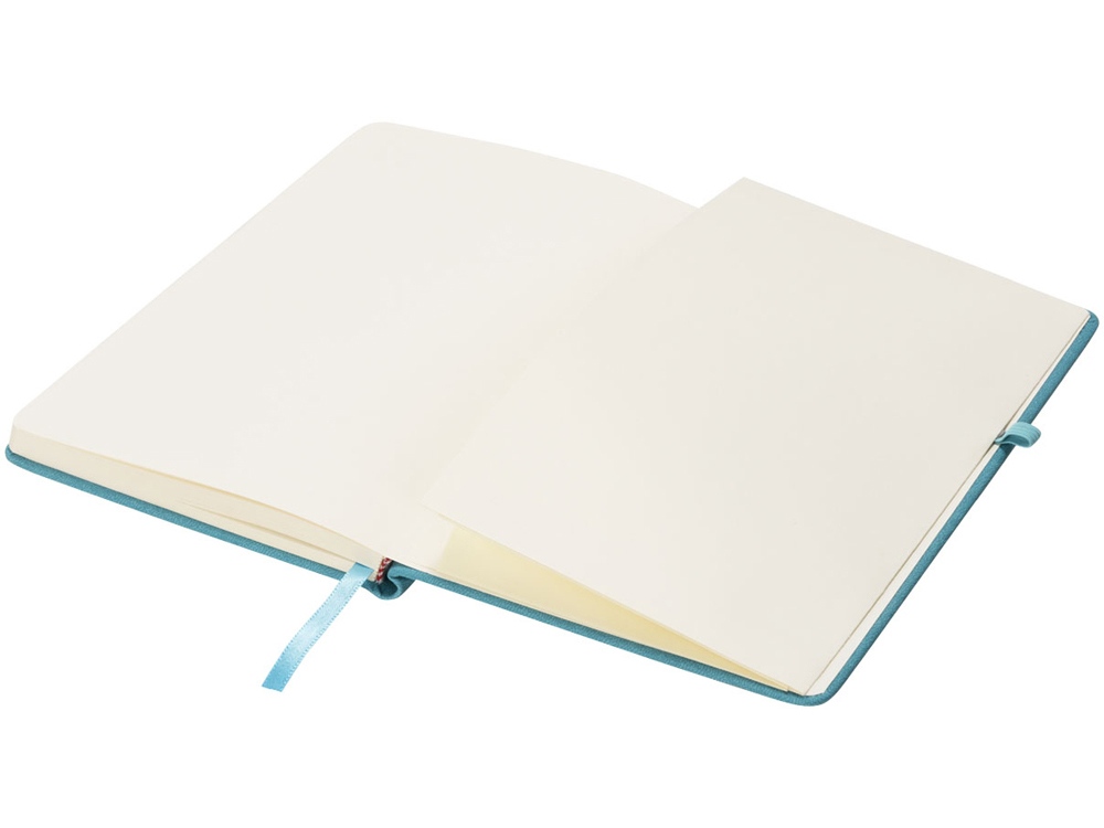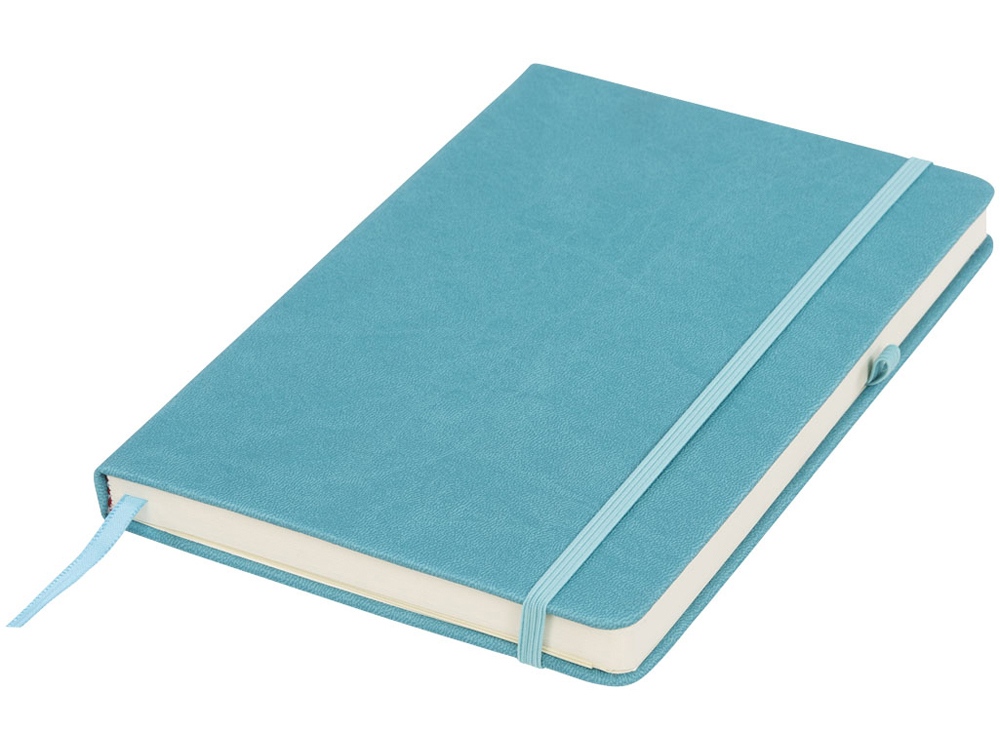 Блокнот Rivista среднего размера. Блокнот Rivista отличается стильным современным дизайном с высококачественной обложкой, идеально подходящей для нанесения логотипа и информации вашей компании. Предлагаются современные цвета. Также предусмотрена эластичная застежка, держатель для ручки, лента-закладка и внутренний кармашек на задней стороне обложки. Содержит 128 листов линованной бумаги (70 г/м²) кремового цвета. ПУ.