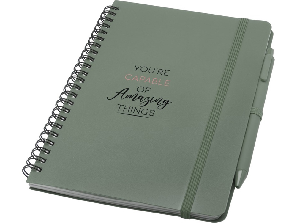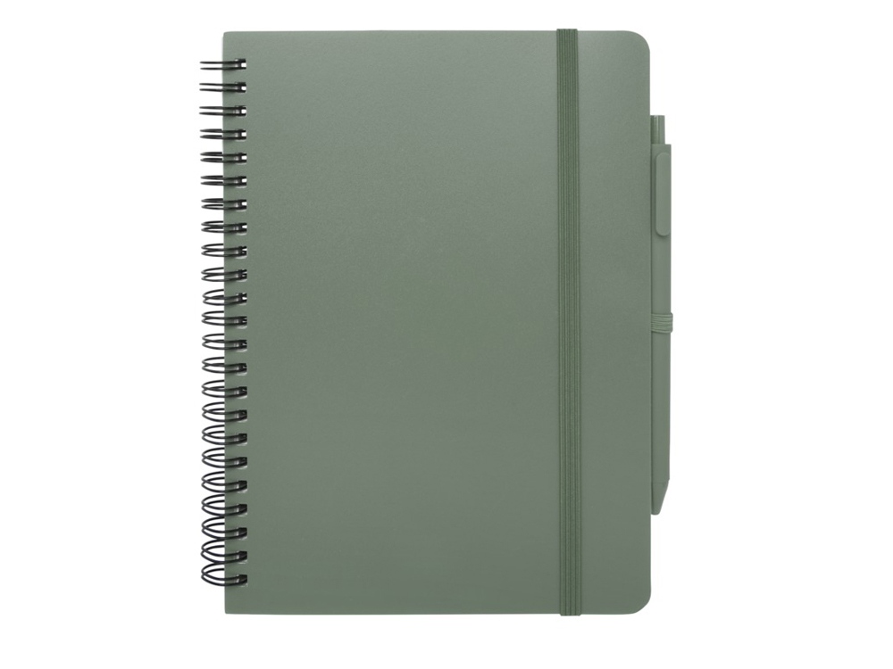 Блокнот Thalaasa формата А5 в твердой обложке из океанического пластика с шариковой ручкой - Зеленый яркий